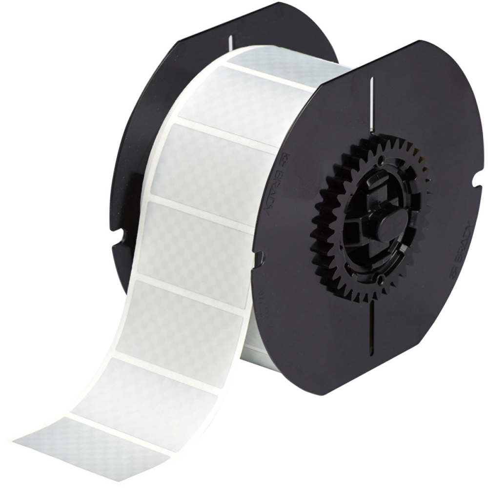 B30-17-438 | Mat Zilver Fraudebestendig, gemetalliseerd polyester met afmeting: 50,80 mm (B) x 25,40 mm (H)