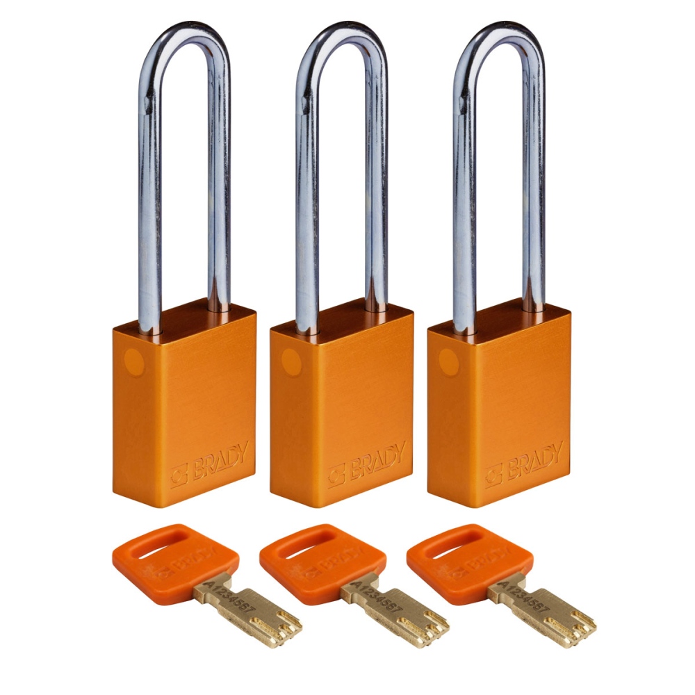 De SafeKey Aluminium-hangsloten van Brady zijn de ultieme sloten voor veeleisende veiligheidstoepassingen binnen en buiten. De hangsloten hebben een aluminium behuizing en stalen beugel, wat ze ongelooflijk licht en robuust maakt. Ze vormen een aanvulling op het assortiment SafeKey-hangsloten van Brady en hebben dezelfde kenmerken. De sloten zijn bestand tegen chemicaliën en corrosie. Het unieke slot-mechanisme is geïsoleerd en voorzien van 6 stalen precisiestiften voor een groot aantal sleutelverschillen en manipulatiebestendigheid. De sleutel en behuizing hebben dezelfde kleur, waardoor ze snel geïdentificeerd kunnen worden. Ieder hangslot wordt geleverd met 1 sleutel. Gepersonaliseerde sleutels, gravering, registratie, loper en centrale loper zijn beschikbaar – bekijk onze aanpassingsmogelijkheden.