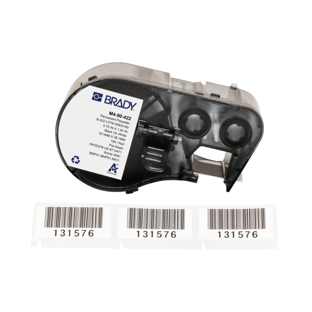 M4-90-422 | Glanzend Zwart op wit Polyester met afmeting: 19,05 mm (B) x 38,10 mm (H)