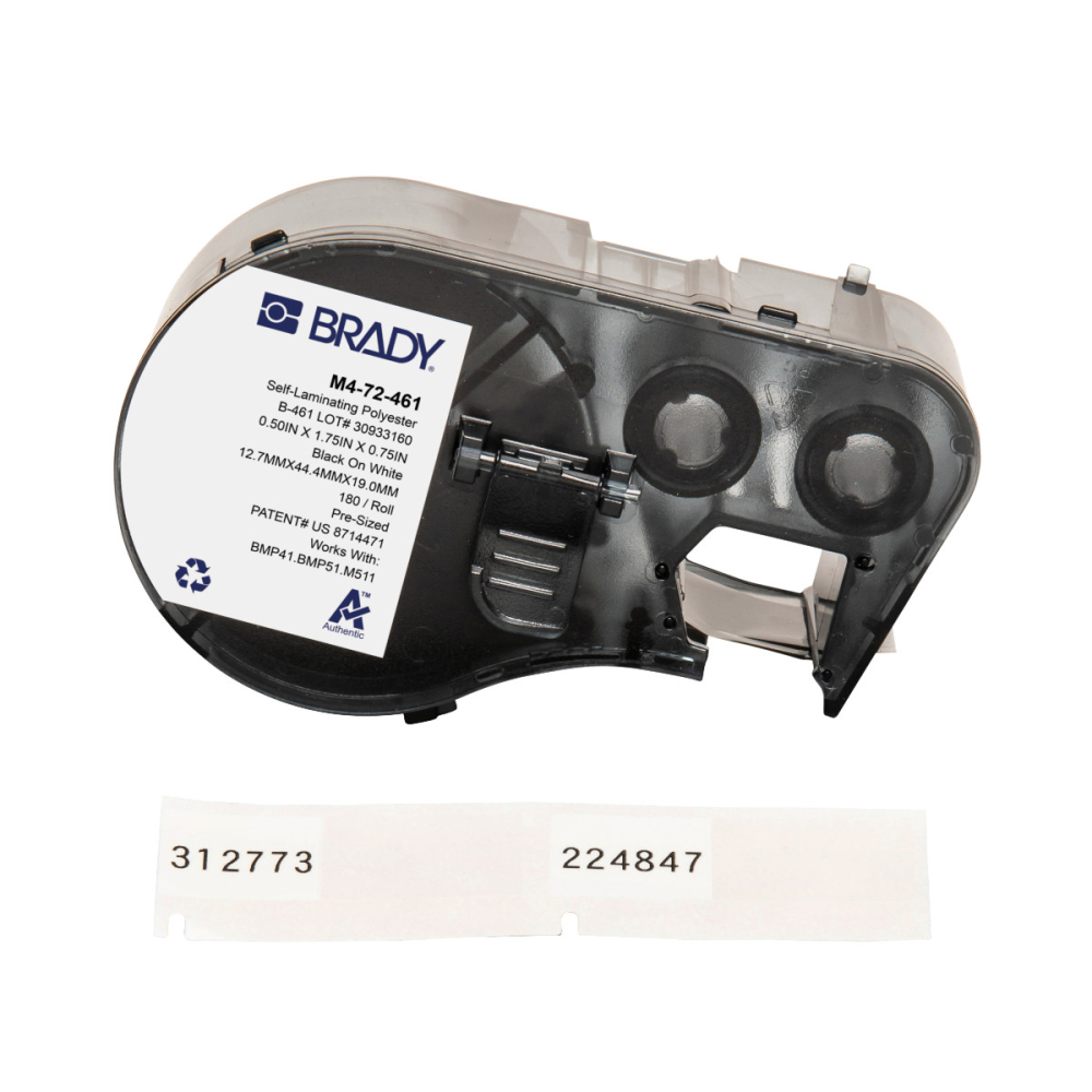 M4-72-461 | Mat Zwart op wit, transparant Zelflaminerend polyester met afmeting: 44,45 mm (B) x 12,70 mm (H)