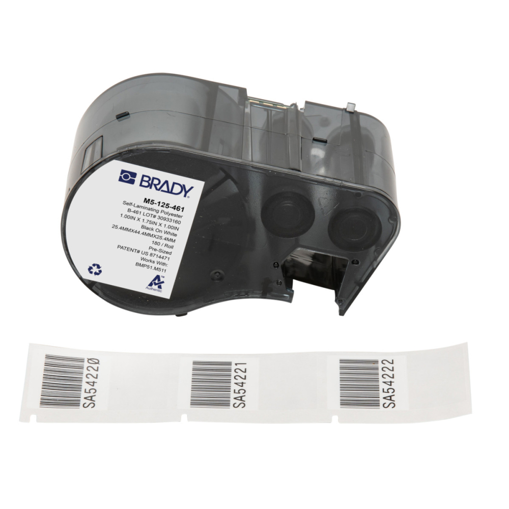 M5-125-461 | Mat Zwart op wit, transparant Zelflaminerend polyester met afmeting: 44,45 mm (B) x 25,40 mm (H)