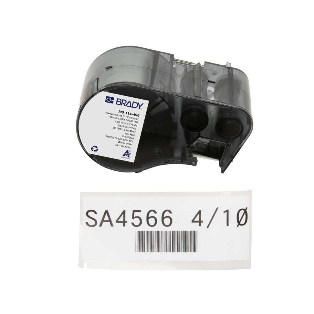 M5-114-490 | Mat Zwart op wit FreezerBondz -polyester met afmeting: 38,10 mm (B) x 95,25 mm (H)