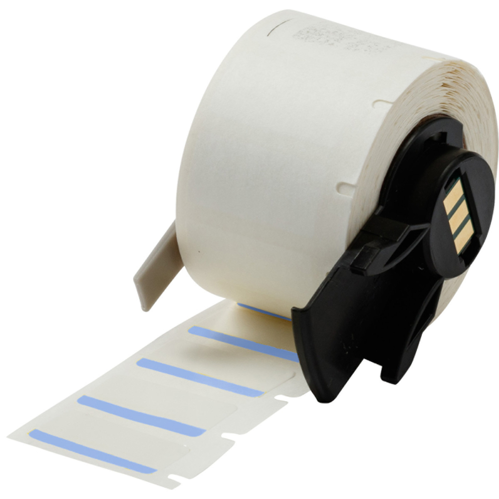 M6-17-494-BL | Glanzend Blauw, wit Polyester met afmeting: 25,40 mm (B) x 12,70 mm (H)