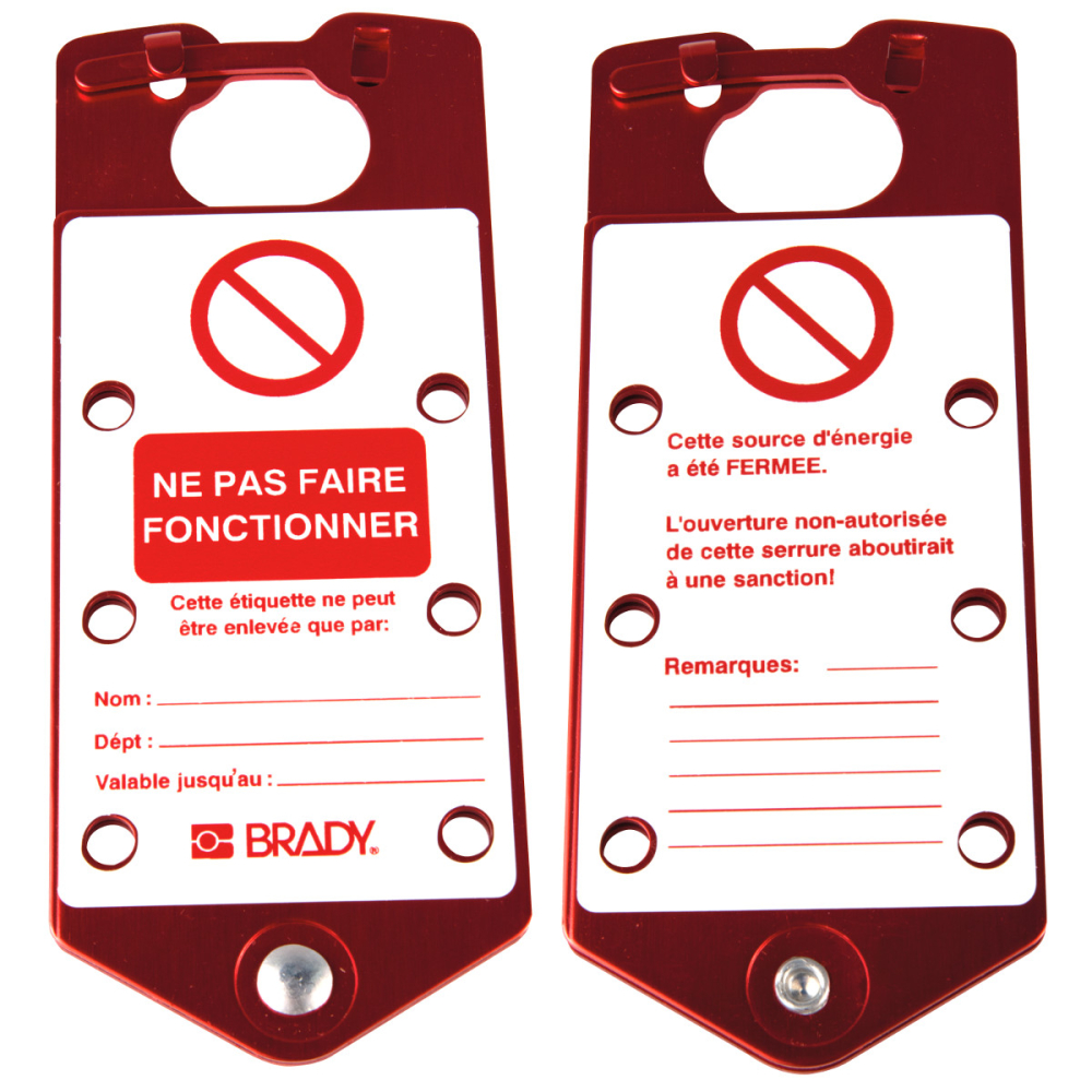 Deze beschrijfbare beugels zijn een combinatie van lockout en tagout en bieden iedere werknemer de mogelijkheid om uitrustingen te vergrendelen en te onderhouden zonder dat ze afzonderlijke beugels en tags nodig hebben. Gebruik permanente of niet-permanente markeerstiften om de labels te beschrijven.