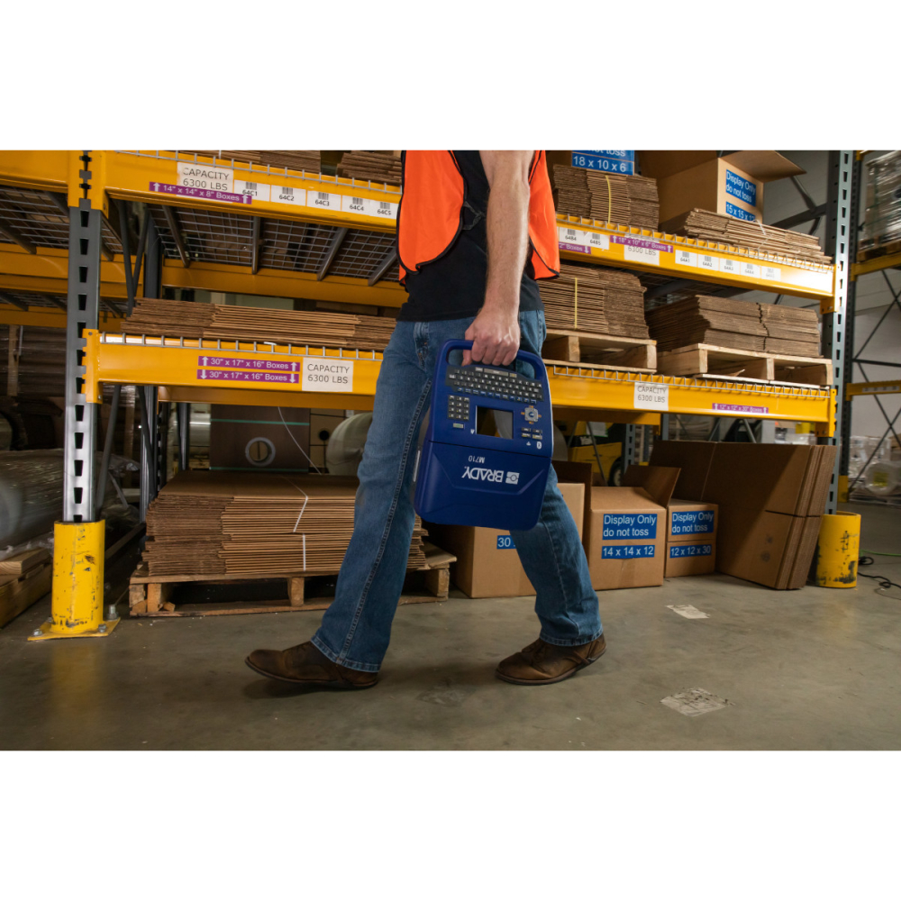 Inclusief: Deze printer wordt geleverd in een verharde draagkoffer en omvat een USB-kabel, snelstartgids, stuurprogramma's, herlaadbare lithium-ionbatterij, AC-adapter, gebruikershandleiding, de Brady Workstation Basisontwerpsoftware, labelrolgeleider, een rol M7C-1000-595-WT en printlint M7-R6000.