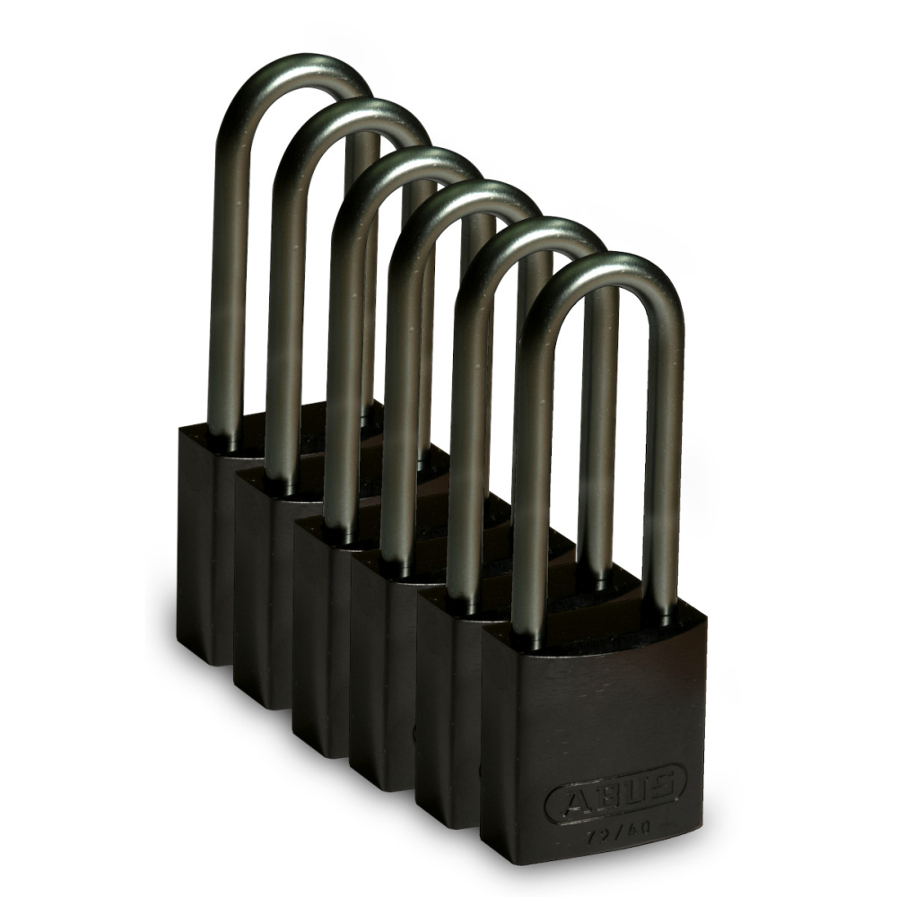 Onze hangsloten bestaan uit een behuizing en beugel in stevig aluminium, wat ze ongelooflijk licht en robuust maakt. De sloten zijn bestand tegen chemicaliën en corrosie, en omvatten cilinders met 6 stiften voor een nog grotere fraudebestendigheid. De hangsloten worden Keyed Different geleverd. Per slot worden 2 sleutels geleverd, GEEN sleutelbehoud. Andere sleutelsystemen en registratie zijn mogelijk. Vergrendelingslabels worden afzonderlijk geleverd.